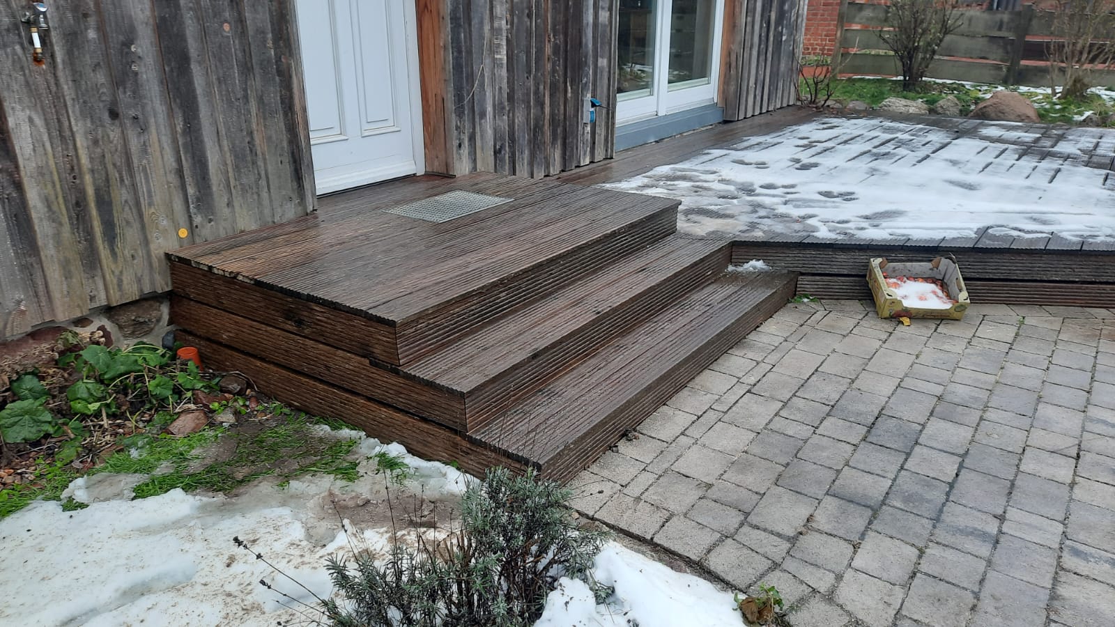 Eine Terrasse aus Holz wie z.B. Bangkirai oder WPC verschafft Dir eine Oase der Entspannung und des Ankommens.